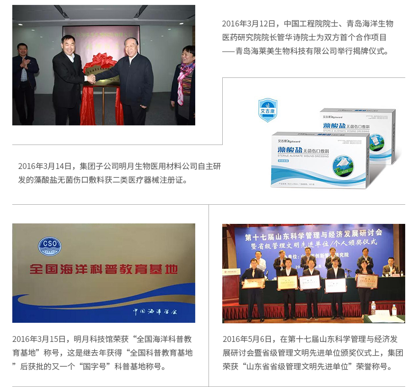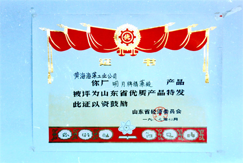 1985年10月,明月牌褐藻酸鈉被評為山東省優質產品。1987年,明月牌褐藻酸被評為山東省優質產品。