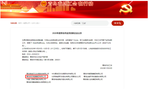 11月,明月海藻集團榮獲"山東省全員創新企業"稱號。