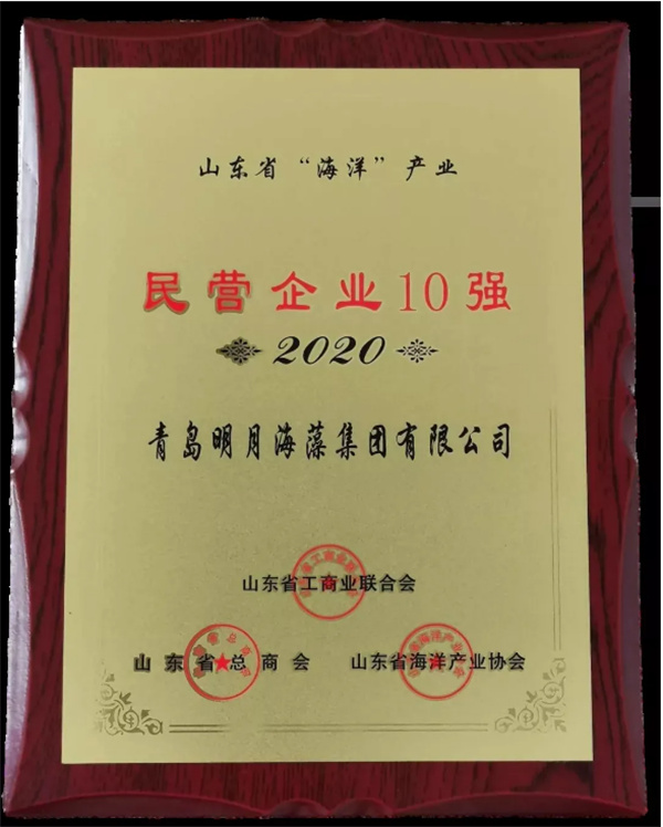 9月 明月海藻集團榮獲山東民營企業行業領軍10強、創新100強。