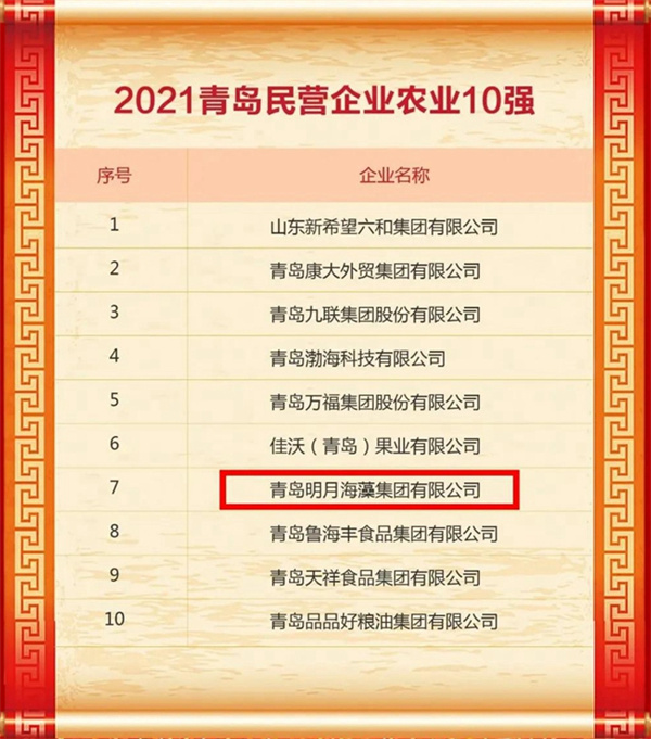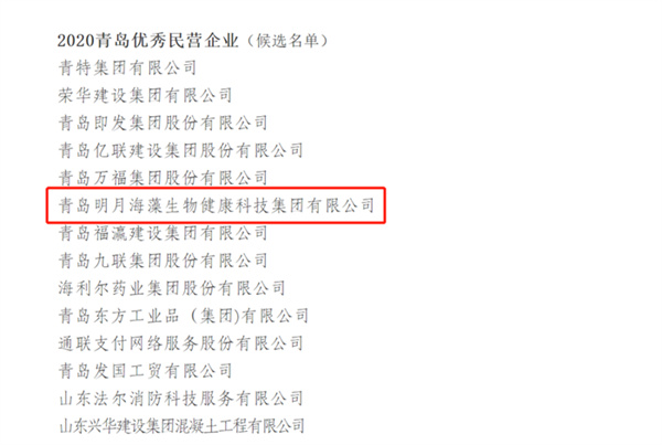 8月25日 明月海藻集團入選青島民企百強,位列第50位。