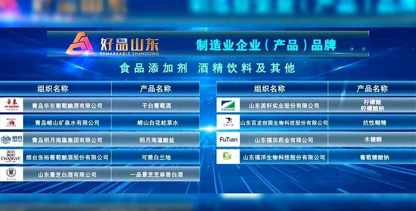 9月12日 "明月海藻酸鹽"入選"好品山東"制造業企業(產品)品牌。