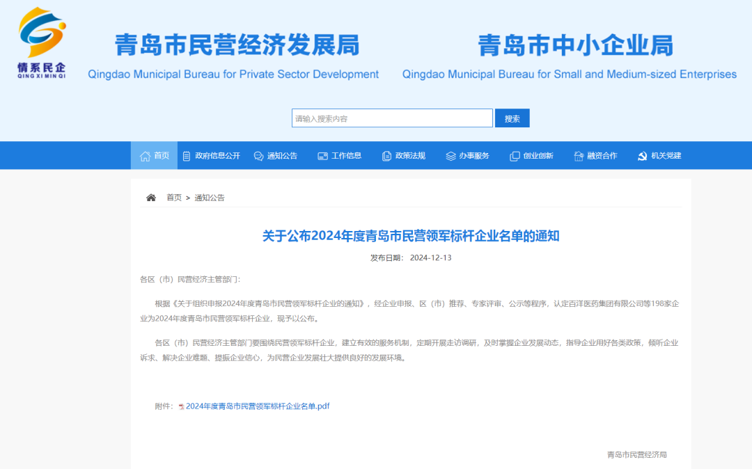 12月,明月海藻集團獲評"2024年度青島市民營領軍標桿企業"。