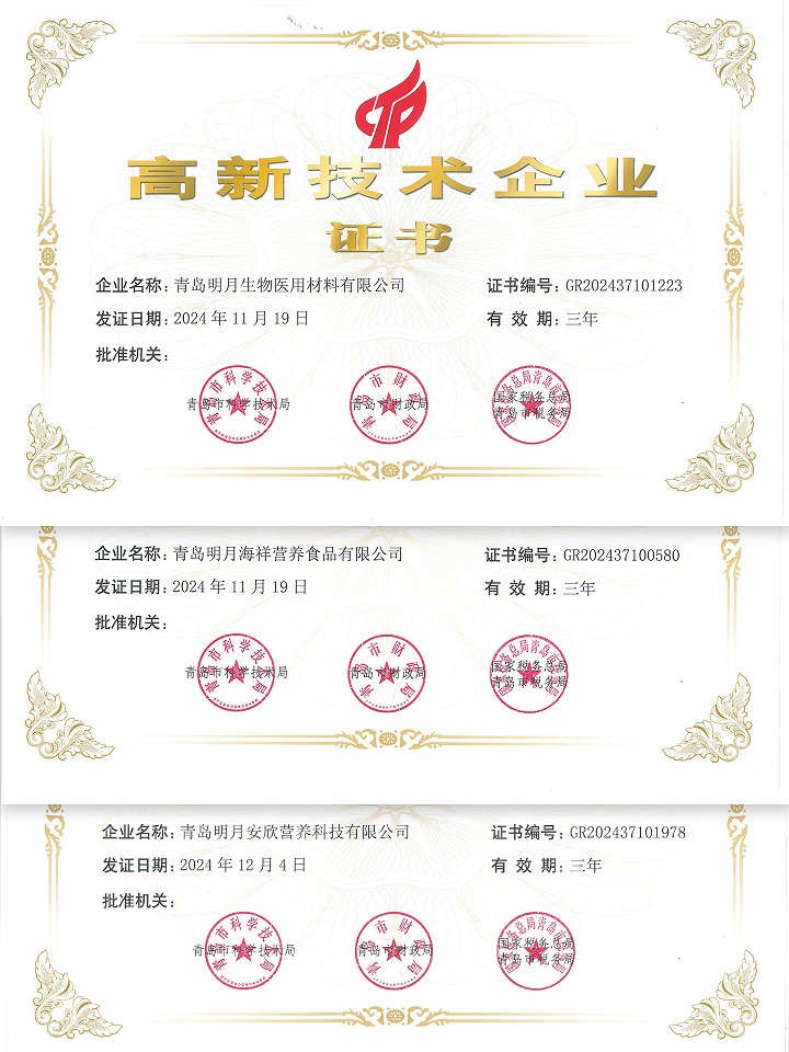 12月,明月生物醫用材料、明月海祥、明月安欣成功認定"國家高新技術企業"。