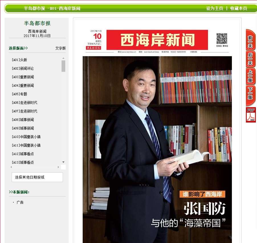 張國防與他的“海藻帝國”—深耕藍色經濟、探究海洋生物半個世紀 明月海藻實... 2017-11-11
