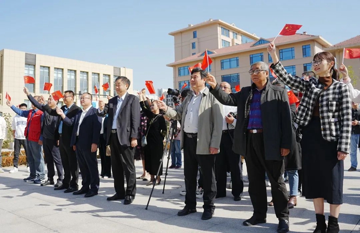 典禮開始前,明月海藻集團的員工代表和來自新區青少年活動中心的孩子們,以一曲《我和我的祖國》快閃表演營造了熱烈的氛圍。現場紅歌嘹亮,余音繞梁,表演者們以飽滿深情的紅歌演唱表達對祖國的愛,祝福祖國繁榮富強。