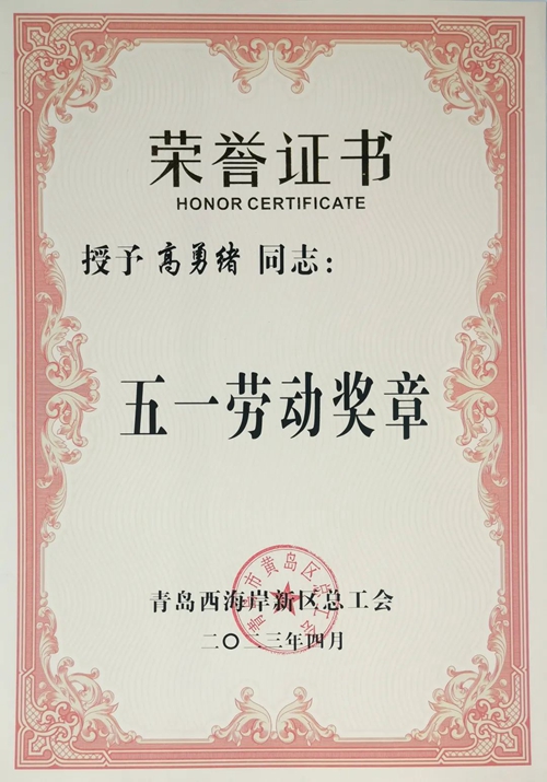 為大力弘揚勞模精神、勞動精神、工匠精神,日前,青島西海岸新區總工會公布2023年青島西海岸新區五一勞動獎和工人先鋒號名單,表彰在勞動和技能競賽、創新創效、爭先創優等建功立業活動中涌現出的先進集體和先進個人,其中,青島明月海藻集團糖醇工廠制氫三班榮獲“工人先鋒號”,設備電氣部總監高勇緒榮獲“五一勞動獎章”。