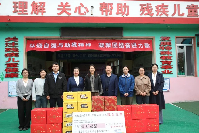 在第35個“全國助殘日”來臨之際,青島明月海藻集團團委再次組織青年志愿者服務隊,走進青島西海岸新區東方聾兒語訓中心,開展“傾聽無聲的世界,關愛無聲的心靈”主題助殘活動。集團紀委書記、工會主席、黨群工作部主任楊曉菁,黨群中心主任封安波帶隊,為孩子們送去10000元善款及米餅、果泥、寬粉等愛心物資,用行動傳遞溫暖,以真情點亮希望。