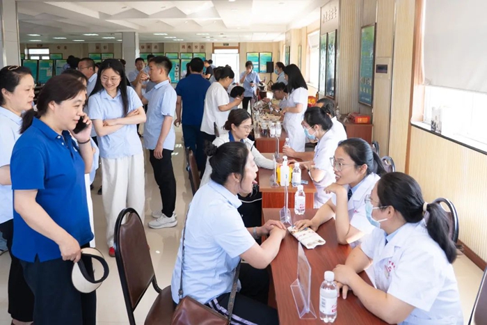 現(xiàn)場精心設(shè)置了眾多體驗區(qū)域,成為員工們爭相打卡的“健康驛站”。耳穴壓豆、刮痧、拔罐等中醫(yī)特色療法體驗區(qū)前排起長隊,大家親身感受著中醫(yī)外治法的獨特效果,緩解了頸肩腰腿的疲勞;中藥茶飲藥膳體驗則讓員工們品嘗到了“舌尖上的健康”;綜合服務(wù)中心的工作人員詳細講解著功效與制作方法;藥劑科準備的常用藥材展示吸引了眾多目光,藥師現(xiàn)場教學“識草辨藥”,膏方、中藥香囊琳瑯滿目,并耐心解答著大家關(guān)于中醫(yī)理療使用的各種疑問,提供科學用藥指導(dǎo)。